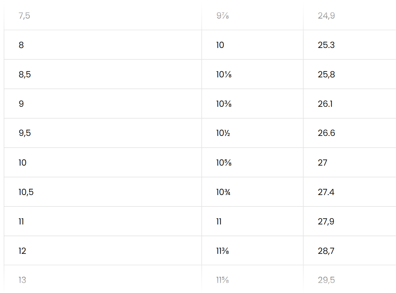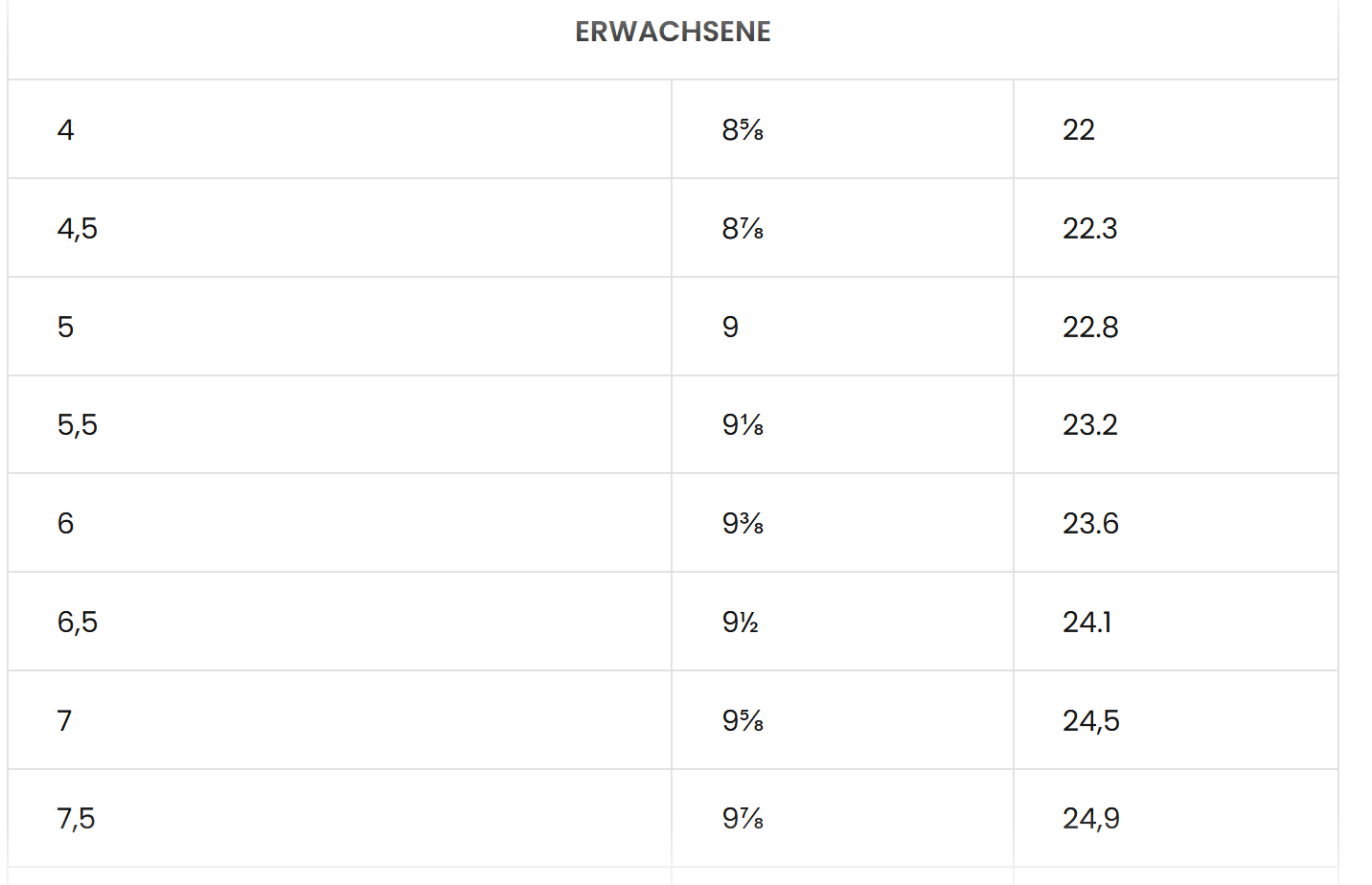 Die angegebenen Größen sind US Schuhgrößen. Bitte eine Nummer größer bestellen.